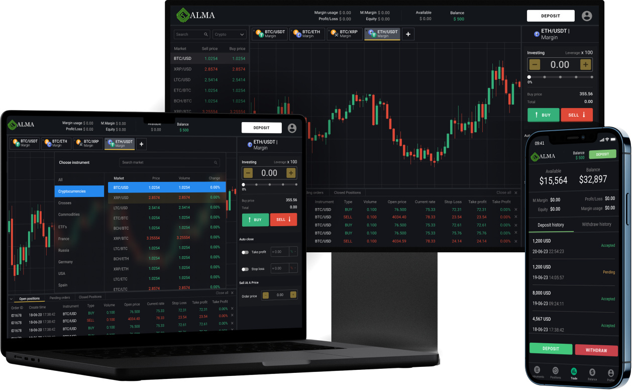 Платформа ALMA MARKET предлагает простой интерфейс с ликвидностью от крупнейших банков и быстрым исполнением ордеров, что дает трейдерам доступ к лучшим условиям для торговли.